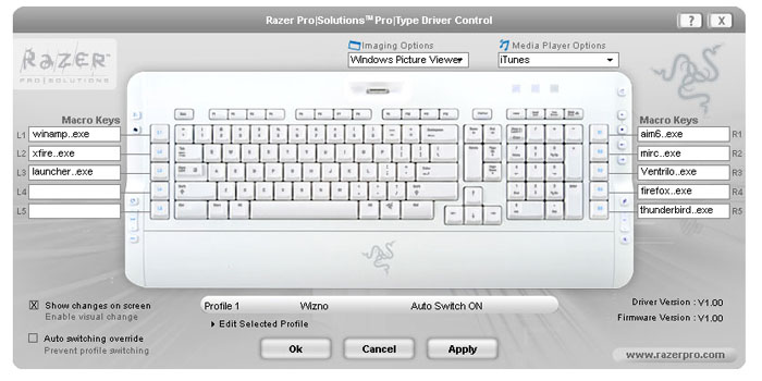 The driver utility also allows the user to select which media program they want to use for the multimedia keys. All of this is instantly available without having to locate any .exe's.