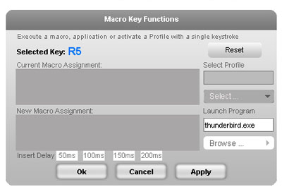 Each of the buttons, L1-L5, and R1-R5 can be programmed to a macro of your choice. So if you want one button to spell out "Hello, how are you doing today?" all you have to do is type it into the macro box in the button settings section and you're ready to go. Otherwise, you can locate the program of your choice and have it load up whenever you need it.