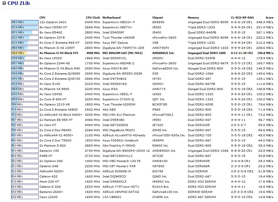 CPU Zlib Benchmark: