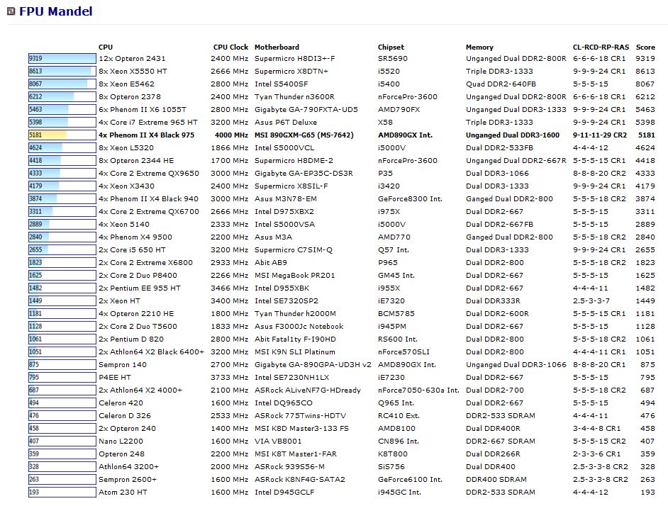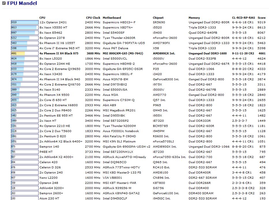 FPU Mandel Benchmark: