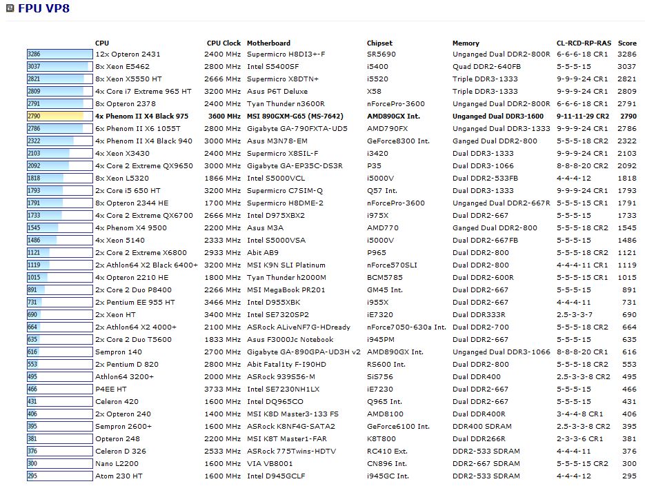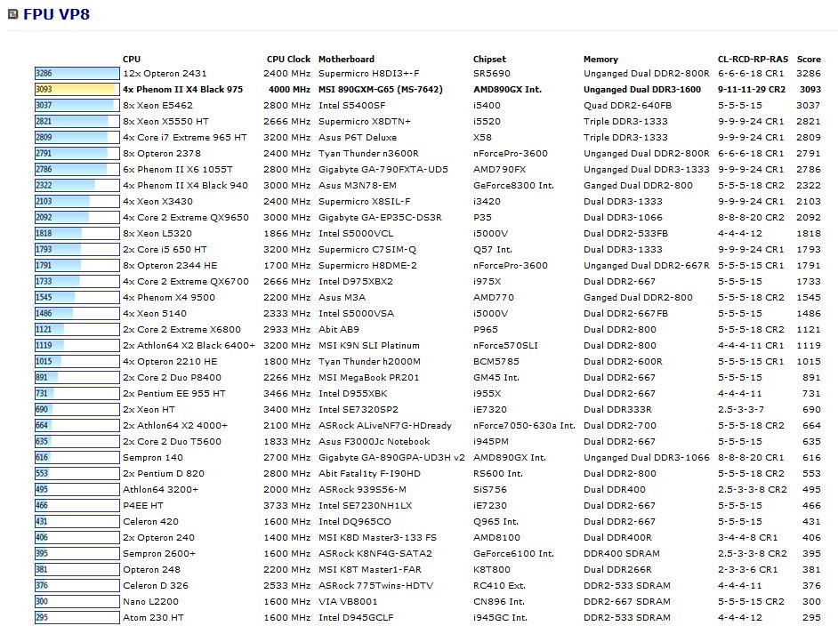 FPU VP8 Benchmark: