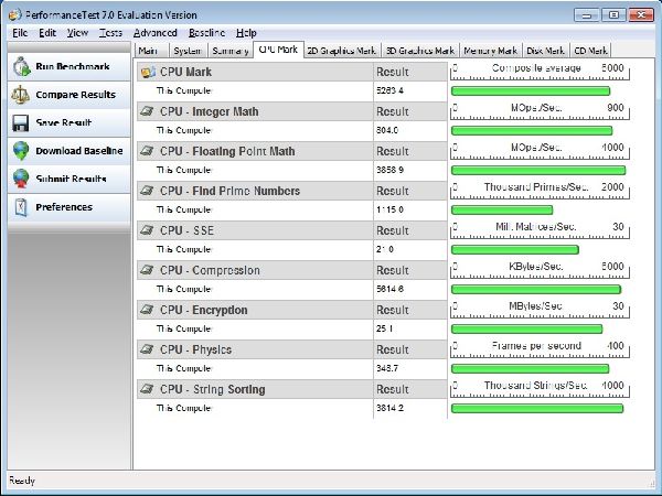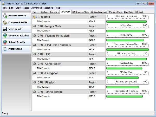 Performance Test is used to give your system an overall rating, similar to PCMark and 3DMark.