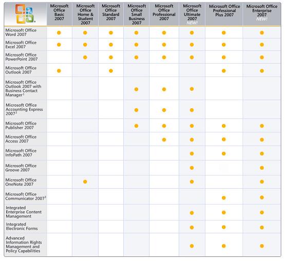 Changes to documents, charts, cells, and presentations are now live. This means that if you highlight text and go to change the font you will only have to scroll through the selections to get a live preview of the new look before making your selection. Its one of those features you really didn't think about or miss before and will now wonder how you did without it. We feel MS really hit the target with the new Office 2007 suite and believe it will be very well received by consumers. Several different packages are available to consumers. The chart below should help you define which package meets your needs. We must note that we find it unusual that MS chose to remove Outlook 2007 from the Professional, Ultimate, and Small Business versions of Office 2007as this is a key application that may will miss.