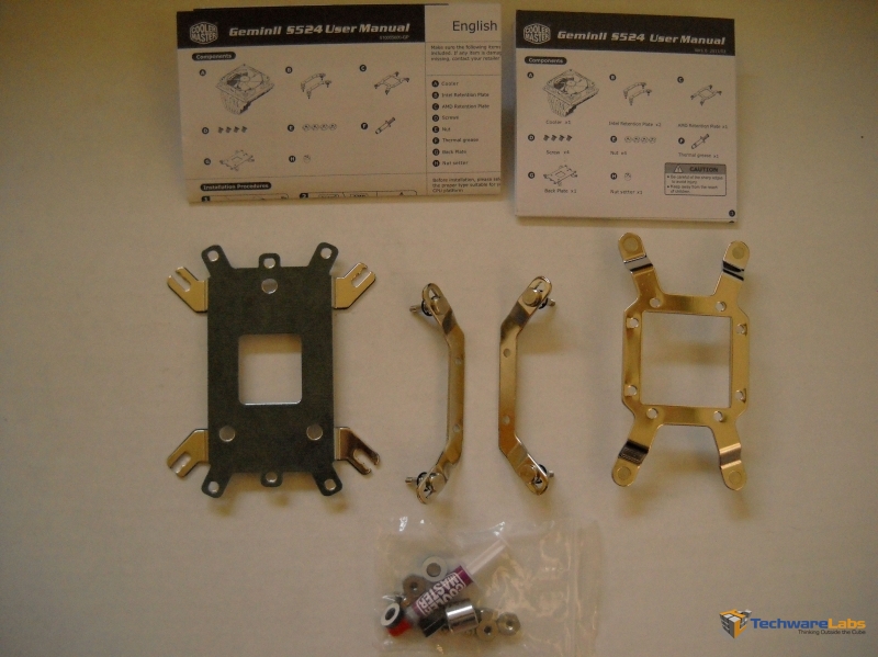 The GeminII’s box is pretty standard with a large picture on the front, specs on the side, and features on the back. Inside the box is the cooler itself packaged very well in foam as well as the included accessories. The accessories consist of installation instructions, the backplate, mounting brackets for AMD and Intel, and all of the screws, nuts, and tools required for installation.