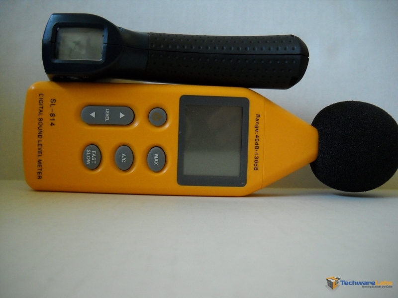 With the fan at full speed, about 1800 RPM, the meter jumped up to 56db. By this point the cooler is making a fair bit of noise, even with the case closed and sitting a few feet away. However, it is nothing compared to the roar of most modern graphics cards and therefore shouldn’t be a problem when both are being loaded.