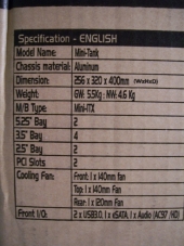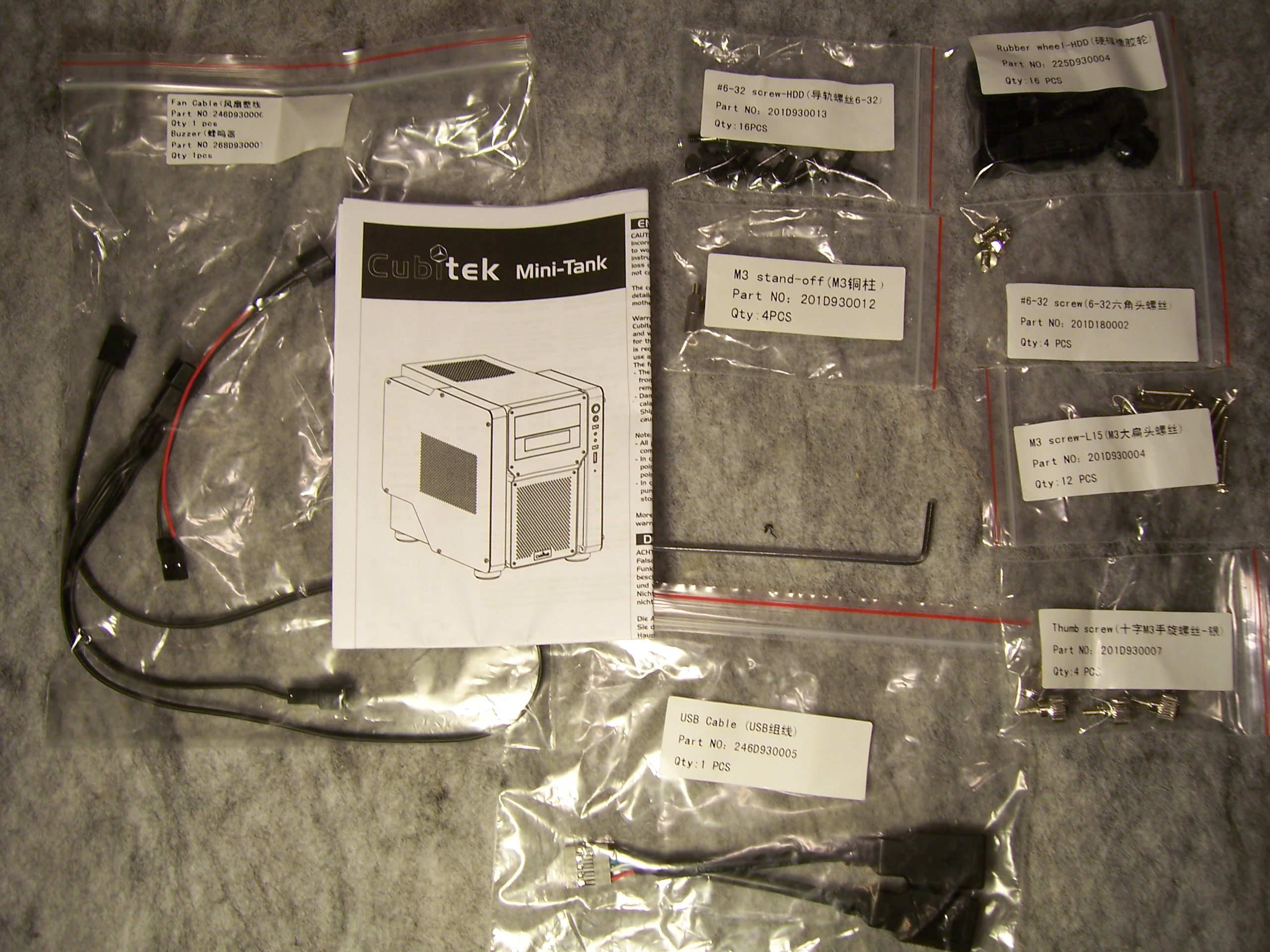 The Mini Tank’s packaging is dynamic, with almost enough information to sell itself. It contains the case (with front panel cables tucked away inside) as well as a box for the screws, cables, and documentation.