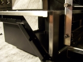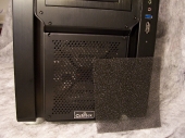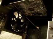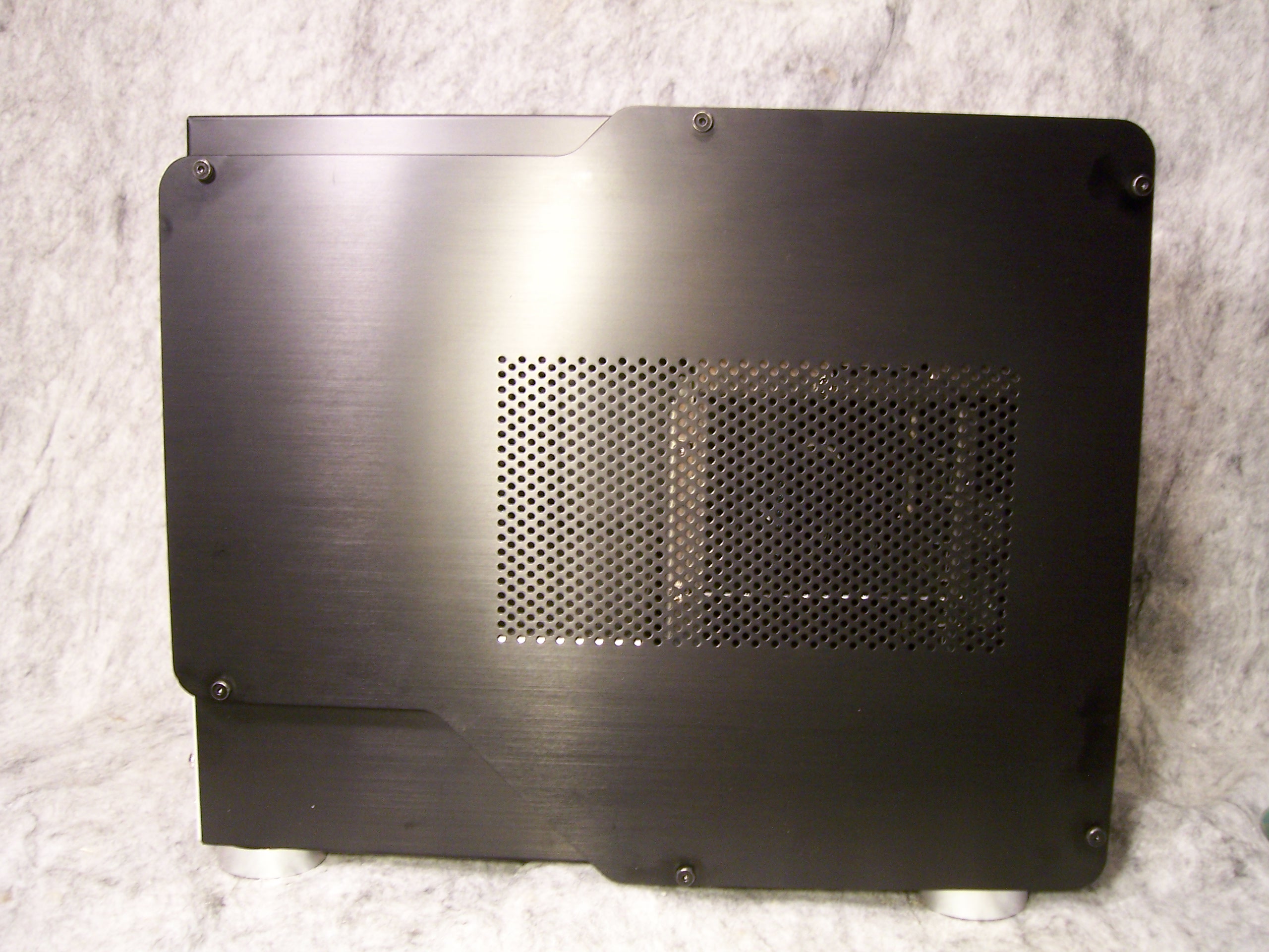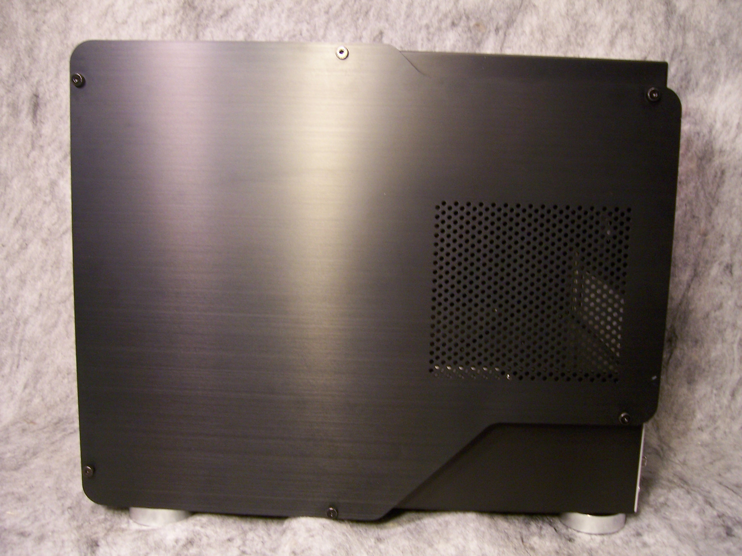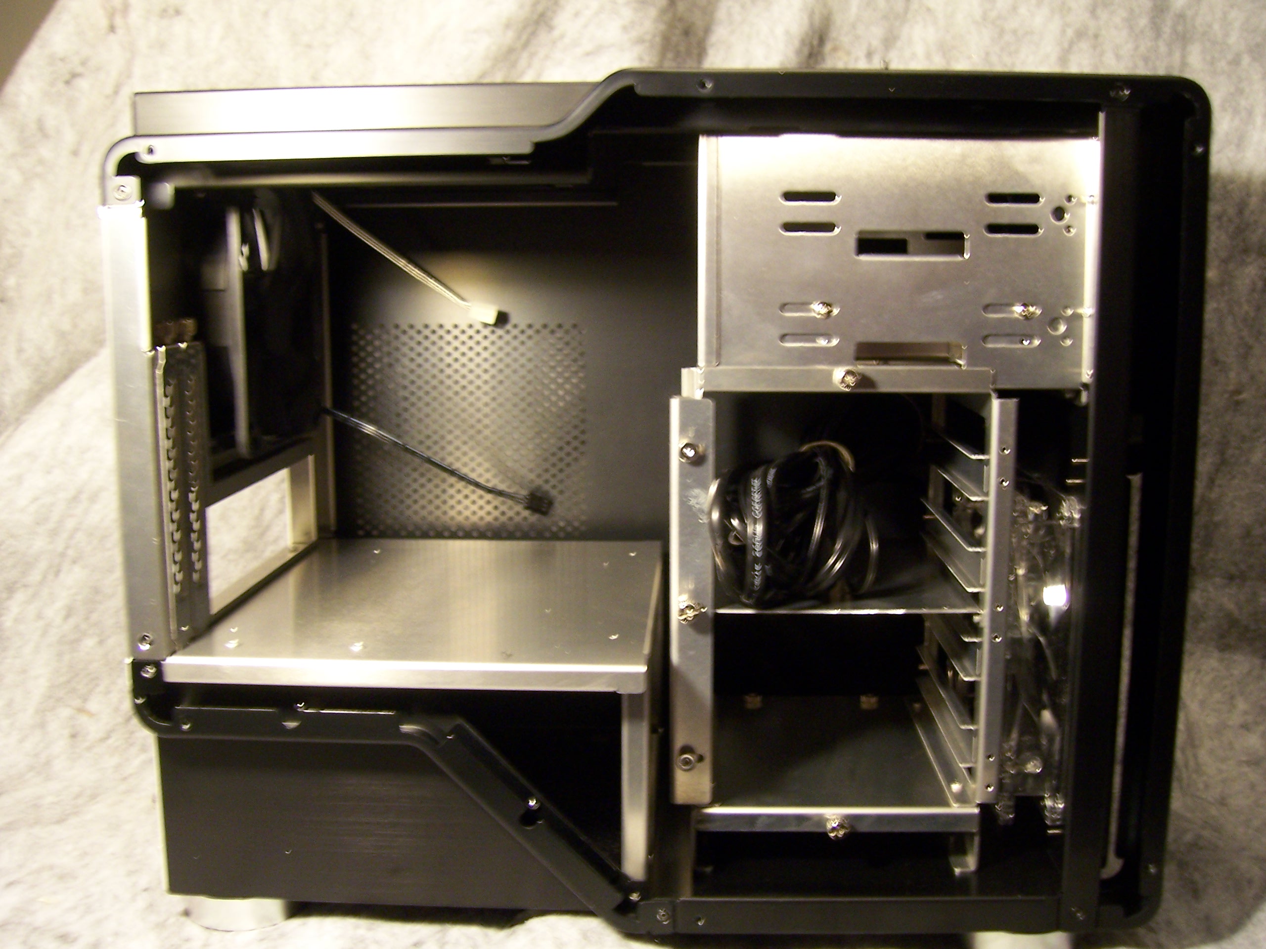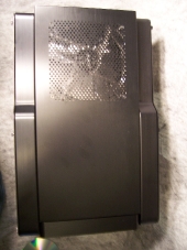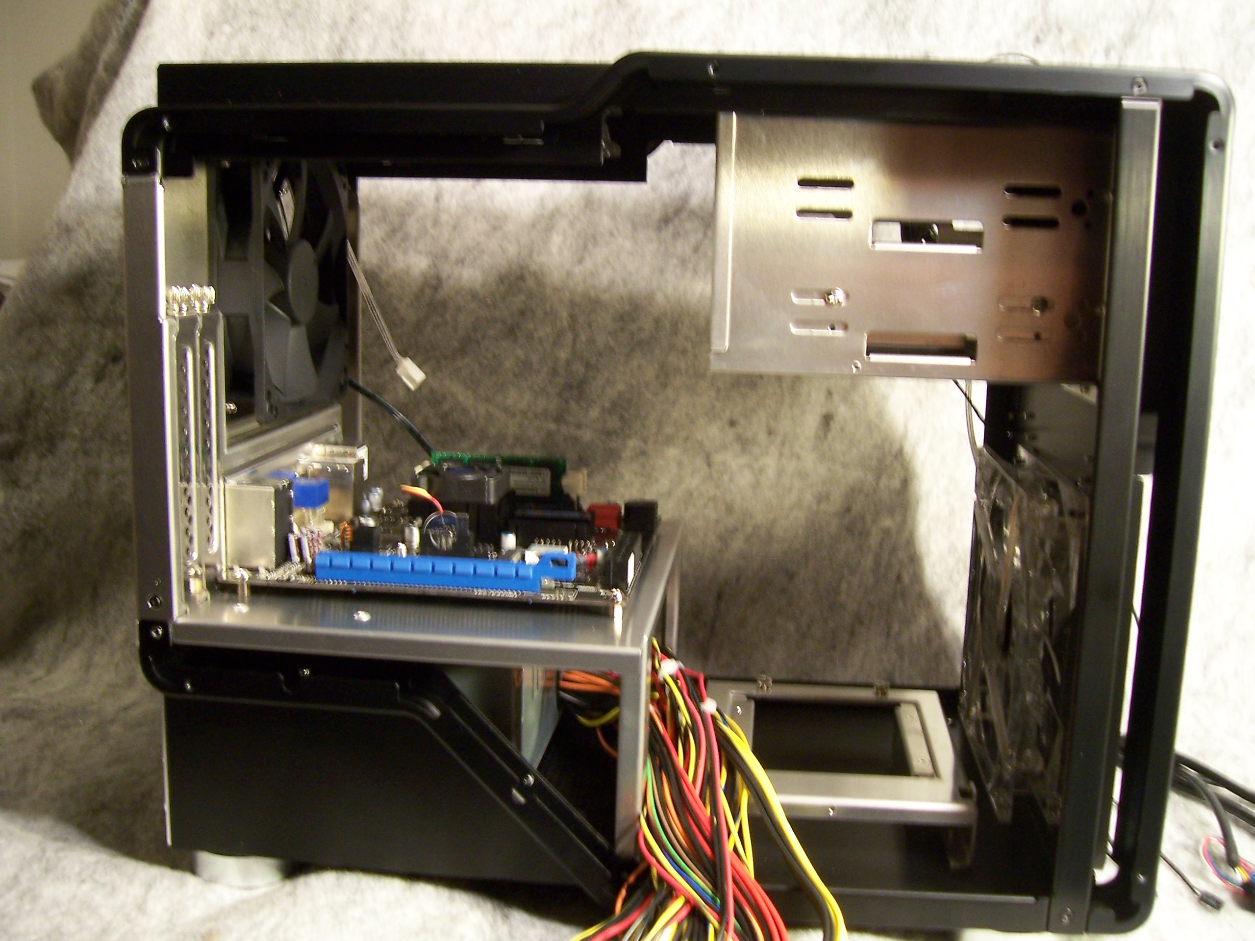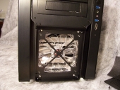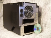 The mini-ATX board mounts horizontally, giving more space for oversized heat sinks and for the heat to have more surface area to disipate from. This does make reading the labels on the motherboard connectors hard to read once it’s installed, so keep the motherboard instruction book handy. It’s also a tight squeeze for a standard-sized screwdriver; you’ll want a shorter crosspoint or even a jeweler’s set to get into all of the tiny spaces. However, the extra width of the case leaves room for a full-sized video card to mount, meaning you don’t have to sacrifice when scaling down to size.
