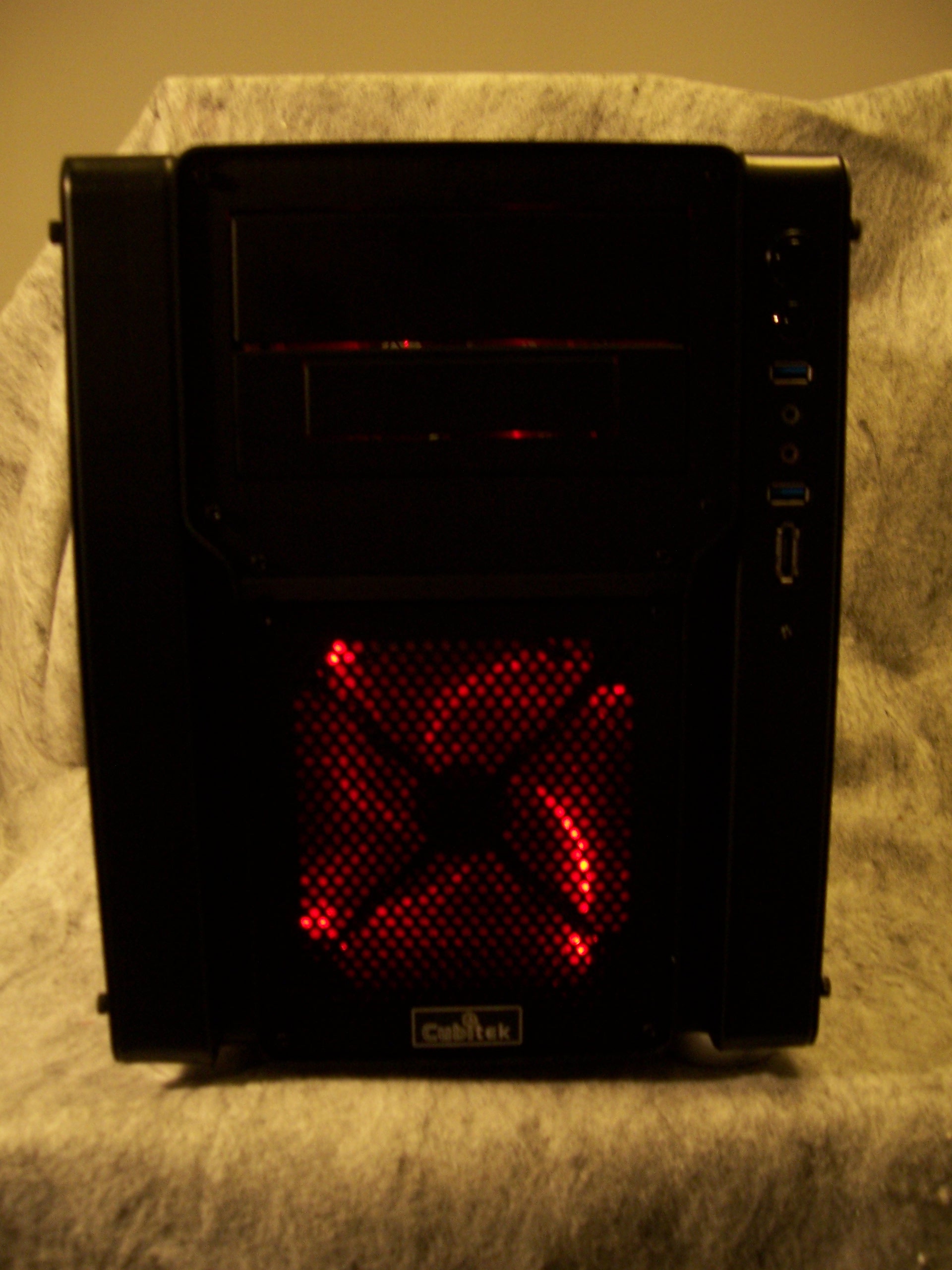 My only criticism for Cubitek’s planning is in the interior fans. The cords from them are super short (3″ or so), and don’t have a hope of reaching the motherboard. Cubitek included an extension cord to resolve that, which even splits the connection from a single fan power port to … two ports. For the three fans. The only way you’ll get all three fans plugged in at once is with an extra adapter (since it won’t reach to the motherboard by itself, even if the board has a second fan plug). Cubitek could have made the splitter reach all three fans, or even included a 4-pin to 3-pin adapter, but that was neglected. However, that’s a small complaint for a solid case, and it’s easily remediable by a trip to the computer parts store (or online ordering). I can’t help but recommend the Mini Tank for any gamer who wants to set up a mini-ATX board for LANs.