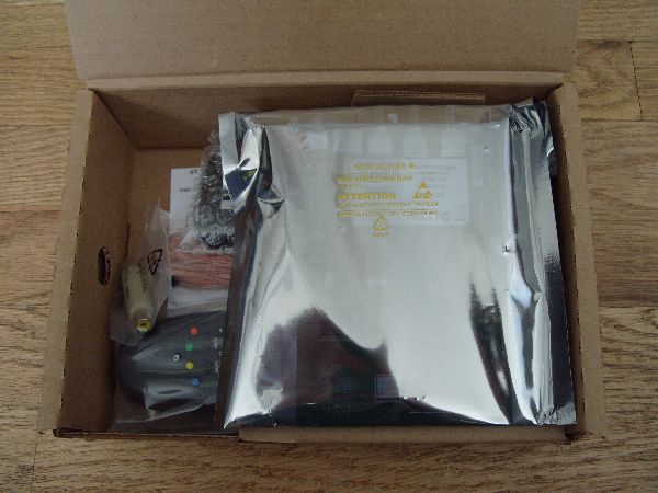 Inside we can see the card packaged in its anti-static bag along with the remote and IR receiver.