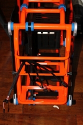 The D-Frame is clever in its design, the case measures 42.8cm by 30.5xm by 66.8cm (19″ x 12″ 26.3″ for those of you who like inches)and the entire thing, including the backplate is made from solid aluminum, giving it a weight of around 25 pounds. In terms of thermal solution the case is open air has room for 4 120mm fans, 3 on the bottom, on one on the front. The front panels has the HD Audio in and out, and 2 USB 3.0 ports. The D-Frame can fit almost any video card, from the smallest all the way up to 33 cm, so this case can be made to transport a small monster. The internal drive bay holds, and locks in place 3 3.5 inch and 2 2.5 inch drives, and has them, interestingly enough inserted vertically. The back plate supports both ATX and Micro-ATX form factors, and on the opposite side has 16 attachment points for the included wire fasteners. This makes wire management easy, which is kind of a must for this case as the sides of the case are made of solid glass. Ample room is provided to do so as well, there is 1.75 inches between the back of the backplate and the glass panel. The back clamp can fit any power supply up to 22cm, so short of you trying to fit a small generator, the D-Frame can take it.