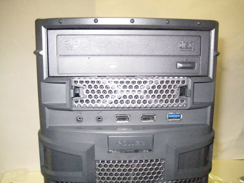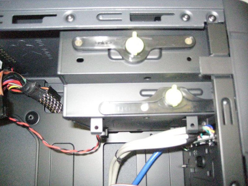 The Dragon Slayer case has space for an optical and floppy disk drives. The floppy disk drive bay can also double as a hard drive bay. The installation of the optical drive was quite easy. I removed the cover from the front panel as well as the tool-less secure pins and just slid the drive into the bay. Below the pictures showing the secure pins and the look of the drive from the front. In most cases the addition of an optical drive somehow takes away from the overall elegance of the case. I was pleasantly surprised that the addition of the optical drive to the Dragon Slayer case in fact adds to the good looks of the case. It gives off the impression that it somehow belongs exactly where it had been put.
