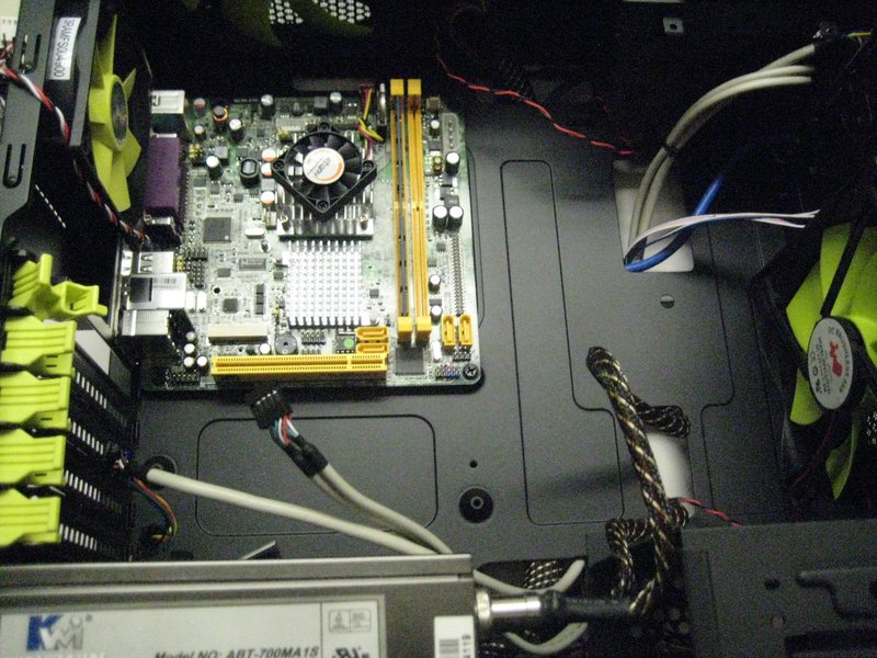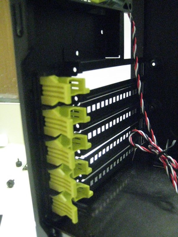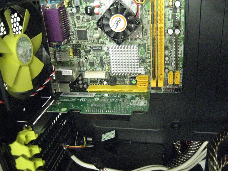 The installation of the motherboard was an easy task to accomplish as the case has ample room. The motherboard that I have installed in the case has 1 slot, however, the case will fit motherboards with up to 5 slots. It will also fit large graphics cards with relative ease as can be seen by the ample space in the pictures below.