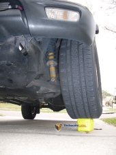 | Here we show the truck’s weight on this tire is completely on the 3500 Series case.. no hidden jack stand or floor jack. | From this angle, you can see the case is not deformed by the weight of the truck. |