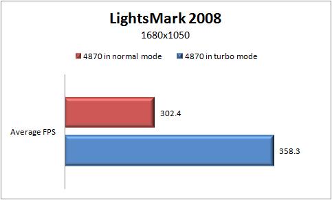 LightsMark shows a rather impressive 50 FPS increase when enabling the Turbo mode. I was kind of surprised that it made that much of a difference, considering the results on the prior tests.