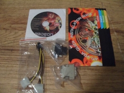 The card comes boxed with a driver disk, quick start guide, DVI to D-sub adapter, DVI to HDMI adapter and a two 4-pin molex to 6-pin adapter.