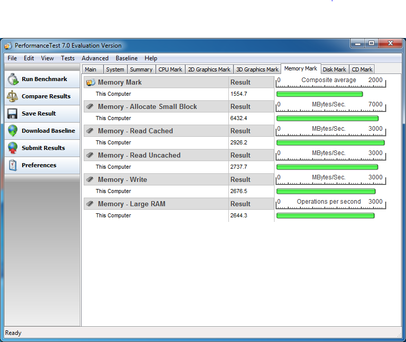 Next we come to Performance Test 7.0. Much like Sandra’s memory-to-cache benchmark, this breaks the performance down by category, size, and unlike Sandra, by task. Once again, results are pretty simple to explain – lots of operations per second means low latency, and lots of bandwidth means data can get where it’s needed with minimal waiting. These factors contribute to a PassMark Performance Test score that’s really quite high, and a score of 9629 PCmarks in PCMark Vantage. This memory was tested in a potent PC with a high end motherboard and Intel Core i5, which certainly contributes a great deal to the score, but we can be sure that PCmark and Performance Test were not RAM-limited. How can we tell? Move on to the next benchmark suite, which represents the ‘smoking gun’ in this evaluation.