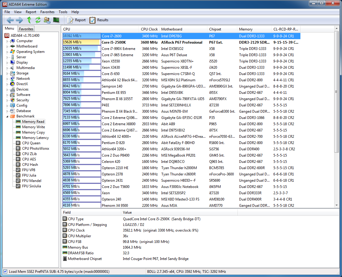 I’m sure you are eager to see the results, but first I shall explain our methods. In keeping with the XMP profiles so thoughtfully provided by Intel and the P67 chipset used, we simply cranked the memory clock up a notch and let the RAM and motherboard negotiate the rest of the settings. While it seems like this may be too simple, Intel’s technology proved robust and effective – first we cranked it up to 1860 MHz, and then to 2100 MHz. Despite hours fo benchmarking, the RAM remained stable to 2100, the limit of the motherboard. After the results from the first round of overclocking were completed, we were excited and apprehensive. After the second, we were ecstatic. This memory kit has phenomenal overhead and enormous overclock potential. Just how good? Have a look.
