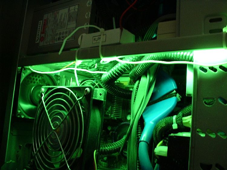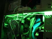 This cold cathode tube is extremely thin (3 mm in diameter), and can be placed virtually anywhere in your case. A word of warning: do not stare directly at the cold cathode light (especially the blue one), it's quite blinding. After handling and playing around with the tubes for a while I can confidently conclude that these cold cathode bulbs and inverters were really well made, and didn't feel cheap or flimsy at all (unlike certain neons). I was really impressed by the affects of this cold cathode on the aesthetics of my case, as that eerie green glow illuminates the inside of my case very nicely, and creates a very cool looking effect on the back of my case.