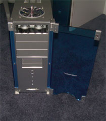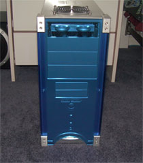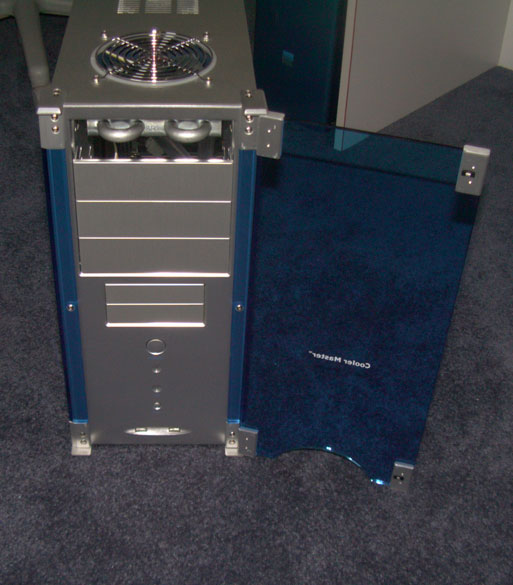 What makes this entire system stand above the rest has to be the fact that it is housed in the Cooler Master ATC210 case. The anodized aluminum case with very nice looking front blue swinging door and a side window this case will attract anyone's eyes.