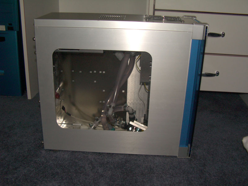 The case coming very well packaged and there was no damage to any part of the case of watercooling kit. Since this case was shipped from the US to Canada which is usually a hard ship with those UPS guys handling these packages. But they were not able to damage this case. After the case is unwrapped you will begin to appreciate the absolute beauty of this case. The acrylic front swinging door opens and close with ease since magnetic hinges are used. After you stop drooling at the window you will begin to notice the beautiful finish of the aluminum exterior. I have seen and tested many aluminum cases including Lian Li ones and the Cooler Master has the best finish.