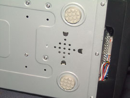 Moving to the front of the case again the bottom portion of the front bezel contains many holes. What are these holes for you ask? Obviously these holes are intended to let air get sucked through them by the two front mounted 80mm fans which are optional. This provides many cooling possibilities. Give this case to someone with modding expertise and I'm sure a radiator for a watercooling setup can be easily placed there.