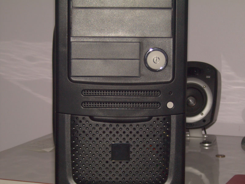 Below are some shots of the rear of the case. Nothing really out of the ordinary from other cases. Also you can see that the case comes with a power supply standard. You will also notice the lack of thumbscrews used in this case. Well you can't get everything in a case with this price. Moving to the front of the case you will automatically notice the emphasized power button to the right of the floppy bays. There is no way you can miss that thing. Located a few inches below the power button is the much smaller rest button and HD LED. Looking at the bottom of the case now you can see that there are 4 round plastic feet which keep the case off the ground about half an inch. They should do the job fairly well.