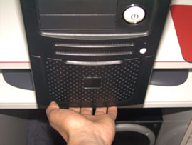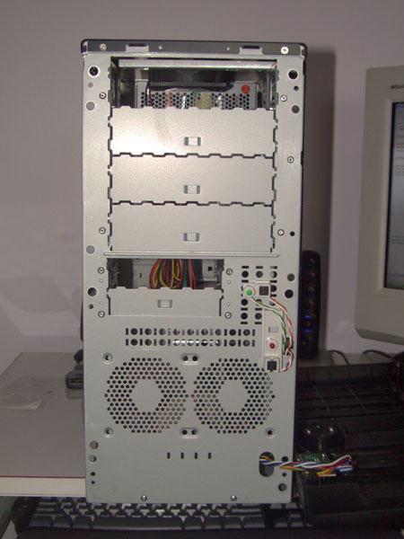In order to remove the front bezel all you have to do is supposedly grab the bottom of it and pull forward. It is a little harder than that because the plastic pins that hold the bezel in place did require me to squeeze then a touch and then pull forward. It takes some time and force but it does comes off. Once the bezel is removed you will notice the two 80mm blowholes in which I was speaking of earlier.