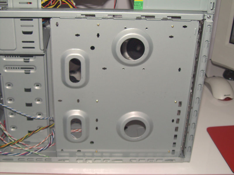 What I like to see every case have is a removable motherboard tray. Unfortunately this case does not have one. Well it has a removable tray but it is very limited. There is a tray in which can be removed and have the motherboard installed on it and put back into the case. However you cannot put in any expansion cards like video and sound while the tray is out because the try will not fit in any more. Also to be able to remove this tray you have to take off the right side panel which is kind of inconvenient.