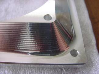 Horse of Iron's aluminum fan adapters have to be seen to be fully appreciated. These finely crafted and functional adapters are available in several different sizes. Each adapter is milled from solid aluminum and then finished to a surprising level of detail. The amount of engineering and work is evident when you take a close look at edges and surfaces. For the price that Horse of Iron suggests for its 120mm to 80mm adapter they could have stopped at simply milling the item to fit fans for those sizes, instead it is evident that the adapter has been finished and surfaces smoothed. sharp edges from milling have been removed and indeed the screw holes have been slightly countersunk. The inside surface that would face the fan is milled to be optimal for airflow and is also hand finished. All screw holes are cleanly bored and free from any obstruction. The milling marks evident from the machine in which these pieces were cut add to the overall look and feel of the adapters.