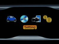 Once the GPS turned on, I was greeted by the screen in the picture below. As you can see in the picture below you are shown four options: "Car" - Navigation, "CD" - Music Player, "Camera" - Photo viewer, "Gears" - Settings.