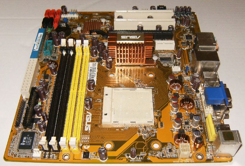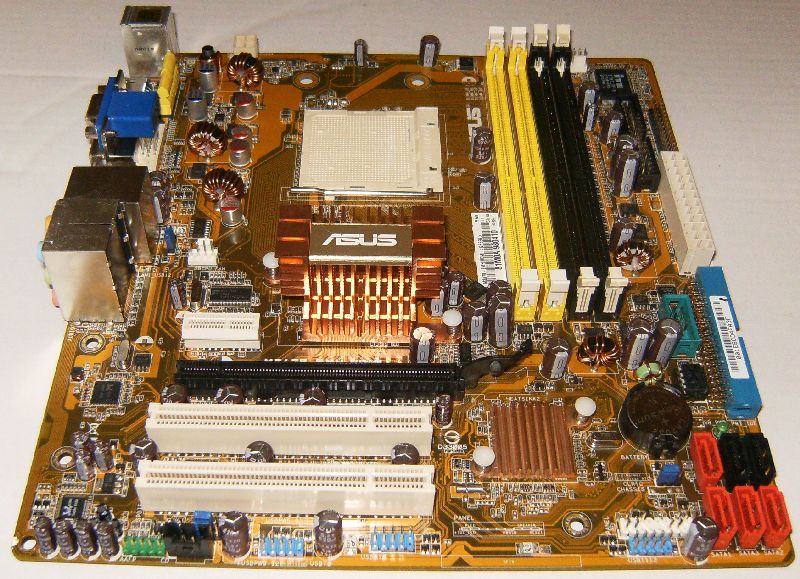 The Asus M3A78-EMH HDMI is a micro ATX form factor PCB. Looking at the four over head pictures below, the motherboard looks very similar to most other micro ATX boards. One thing that changing with motherboards is the die used for making the board itself, Asus used a base color of brown to make their board. We see that there is a total of four memory dimm slots, which some micro ATX motherboards only have two. Asus offers the standard expansion slot options: one PCI Express x16 slot, one PCI Express x1 slot, two PCI slots.