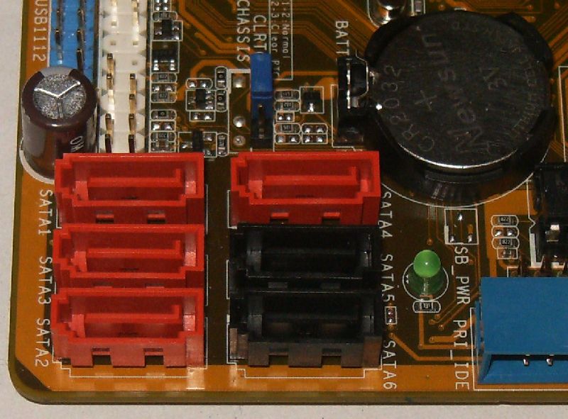 On the board is six sata connectors which will be connected to either your hard disk drive or optical drives.
