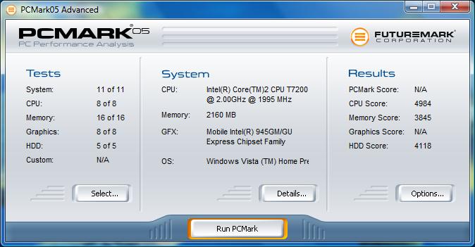 The PC Mark benchmark tests and entire system and provides a score based on that systems performance. PC Mark 05 does not fully support Vista so were were able to obtain only partial results.