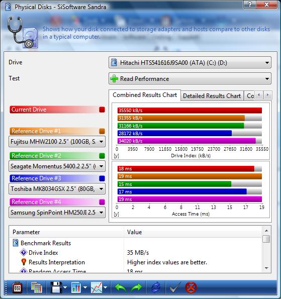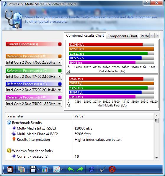 Sisoft Sandra provides a synthetic testing of s systems components and subsystem and generates a score that is used to give a relative performance index when compared to other platforms and hardware.
