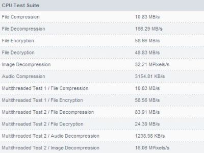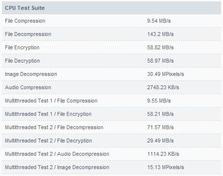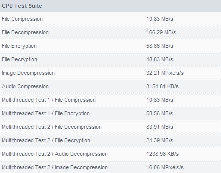 Crystal Mark stresses key parts of your process and measures its performance. For the purposes of this review you only need to pay attention to the three key sections that relate to the CPU, these sections are the Alu, Fpu, and Mem.