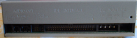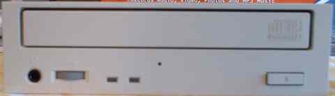 The CD-W540E has the standard headphone jack and volume control, and two LEDs on the front. On the back are the standard IDE interface, 4-pin power connector, jumpers (the default is master), and an analogue audio connector.