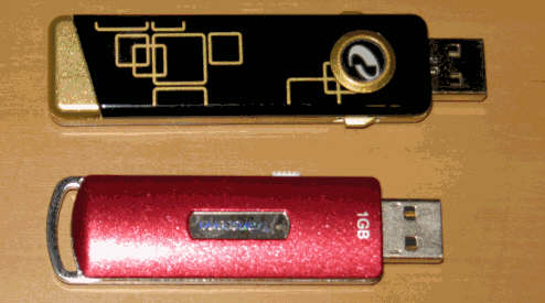 Side by side we can get a clearer image. Disregarding the JetFlash110's wrist-strap holder the unit is about 5.5cm compared to the Touch510’s 7.5cm.