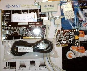 Kudos to MSI for including an abundance of extras. The box contains fold-out calendars and toys, extra USB ports, a additional sound card for extra sound features, and an MSI case sticker. An optional video encoder card using a Conexant chipset can be purchased for TV-out support and includes the s-video cable.