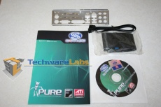 Looking at the beautiful exterior of the Pure 780G box, you can clearly se the Sapphire logo and AMD logo, along with the ATI logo at the bottom indicating the strong interrelationship between these entities in providing the consumer with a great product that works extremely well. Opening the box contents, we find you get an ide cable, a sata cable, the software installation cd, and a rear I/O cover plate for your case. A standard user manual is also included to help answer any of your questions that may arise during your installation.
