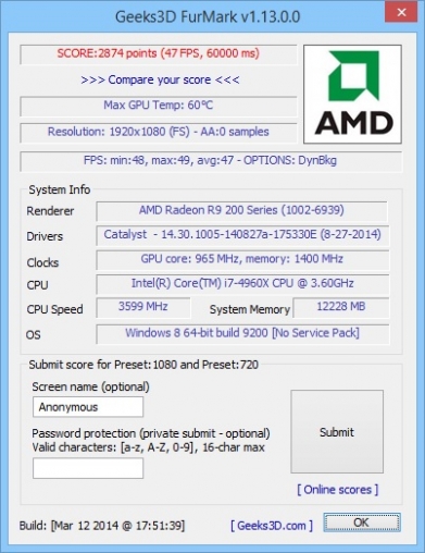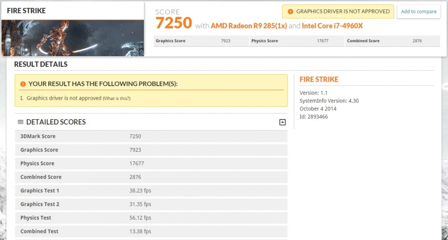 Going up against the 280 and 290X, our 285 scored 7250, putting it just ahead of the 280.