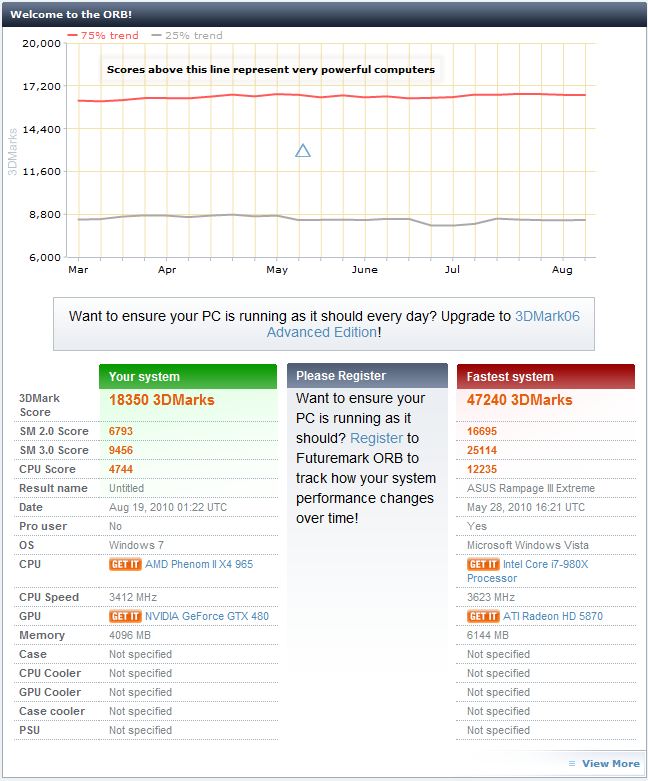 “3DMark06 is a PC benchmark suite designed to test the DirectX9 performance of your graphics card. A 3DMark score is an overall measure of your system’s 3D gaming capabilities, based on comprehensive real-time 3D graphics and processor tests. By comparing your score with those submitted by millions of other gamers you can see how your gaming rig performs, making it easier to choose the most effective upgrades or finding other ways to optimize your system.”