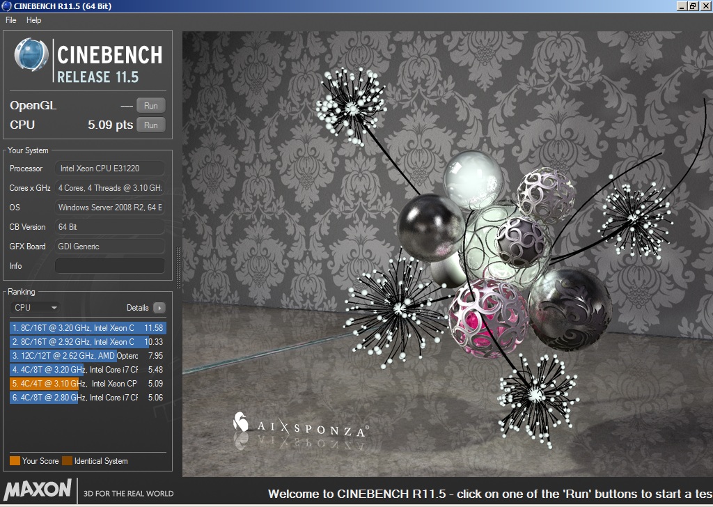 CINEBENCH is a benchmark that measures a CPU’s performance when rendering a 3D scene. It is scalable up to 32 processors, and makes for a decent real world benchmark for determining a CPU’s potential in the 3D graphics market.