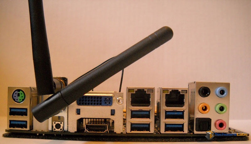 As you can see, no compromises were made with the I/O ports, giving two display options, 6 USB ports, two ethernet ports, a ps/2 port, and a full audio panel, as well as the WiFi antennas.