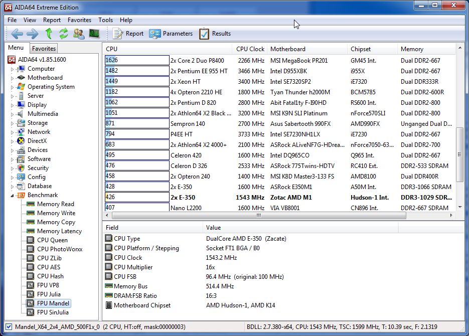 Mandel, which tests a more complicated working set, gave us a result of 426.