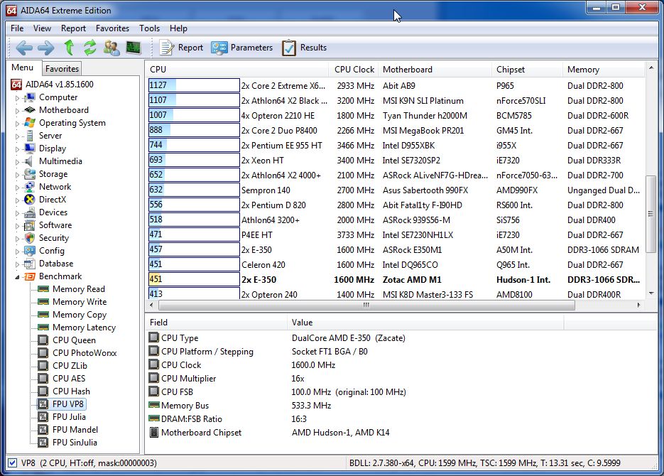 The VP8 test, which measures video encoding speed on the CPU, posted an expectedly low result of 451.