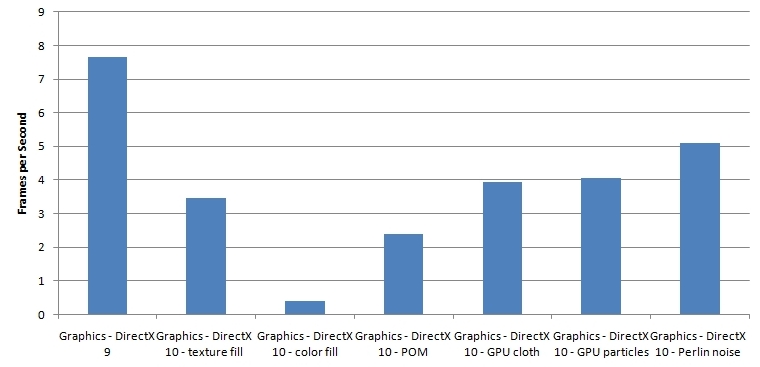 The 3D graphics tests all registered in the single digits for framerates, perhaps unsurprisingly.