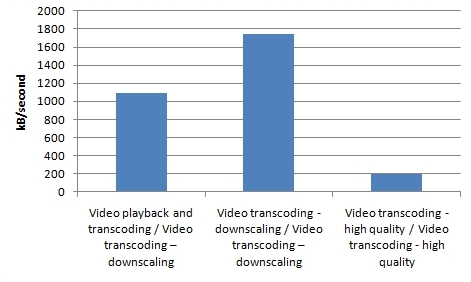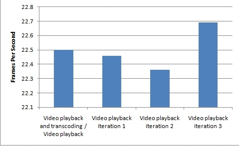 Video playback tests, which utilize only the CPU, gave an average framerate of 22.5 fps. Video transcoding scores varied widely, with the best result from the second downscaling test, and the worst from the high quality transcoding test.