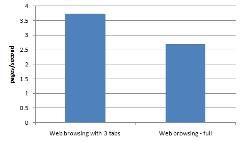 Web browsing tests came in between 3.74 and 2.7 pages per second, depending on the number of tabs open at once. In this, at least, there were no problems.
